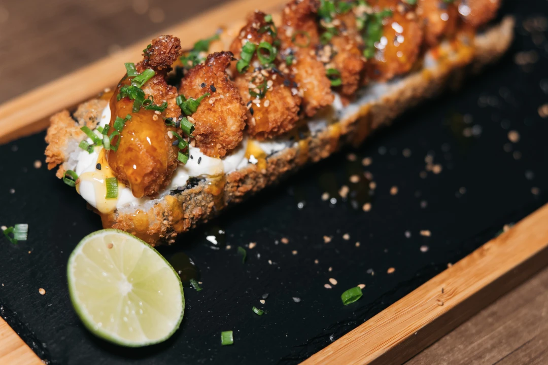Este é o nosso incrível hot de camarão empanado, super crocante. Veja de perto como ele é preparado: