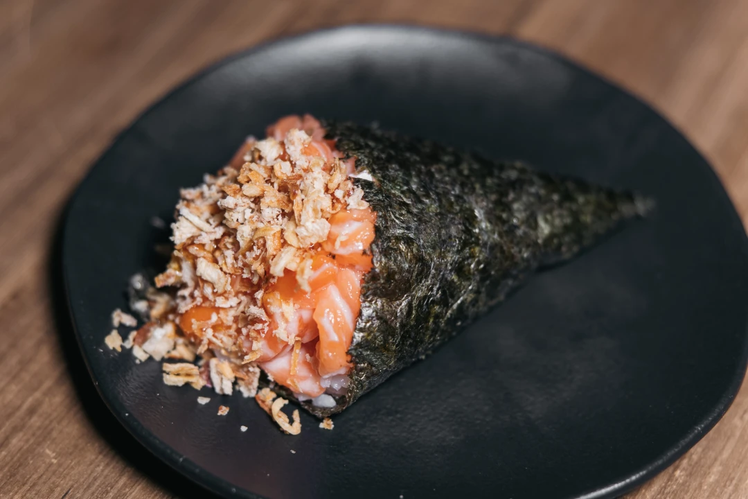 Pele de Salmão empanados em farinha Panko e frita, cebolinha com um toque do nosso Molho Tarê especial. Todos os nossos temakis são feitos com arroz e alga premium. Enviamos em todos os pedidos 2 sachês de shoyu. Aproveite e peça agora mesmo!