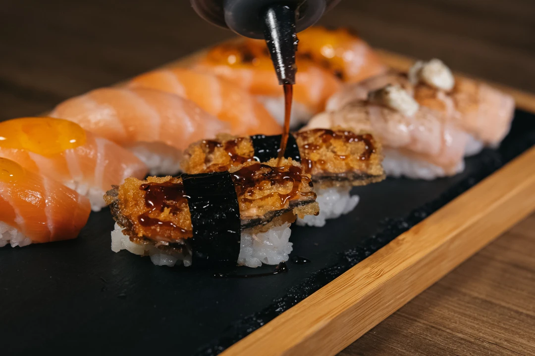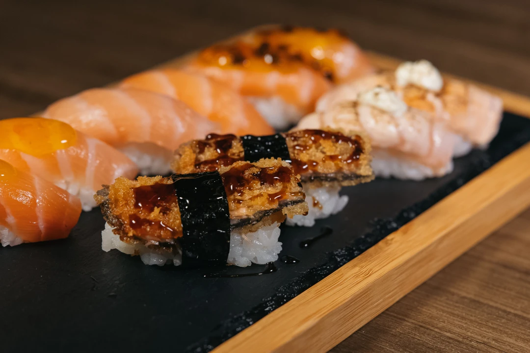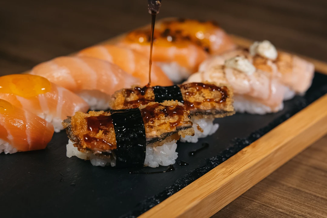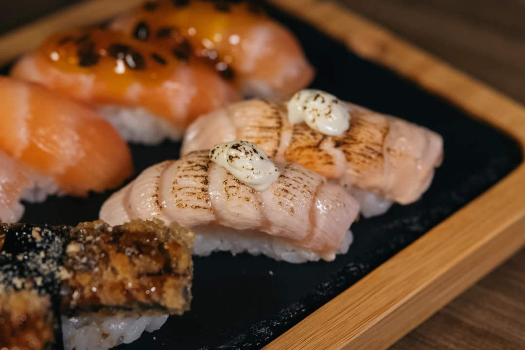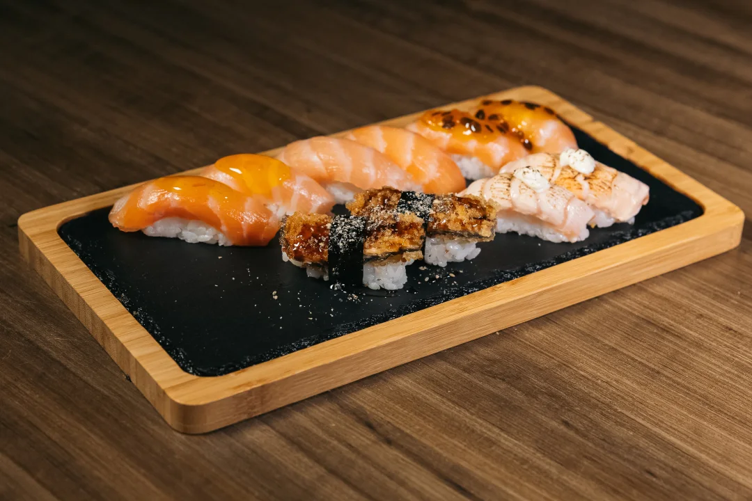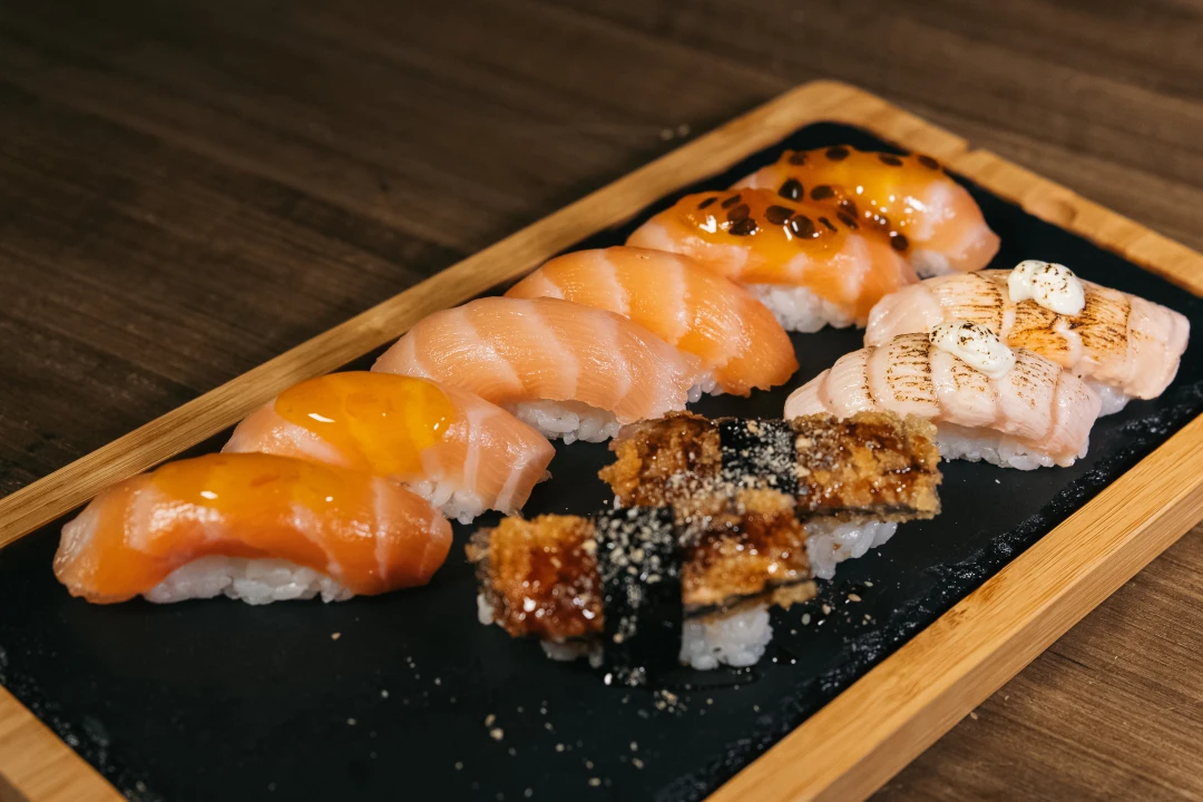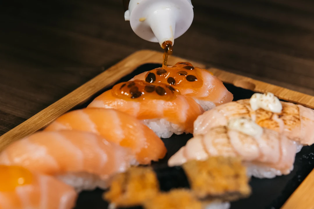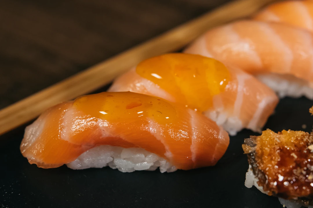 • 02 Niguiri de Salmão com Geleia de Maracujá
