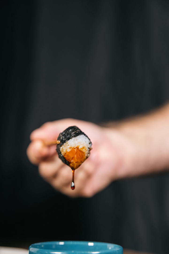 Enrolados com a nossa alga premium por fora, recheado com salmão frescos e arroz premium cozido na medida certa.
